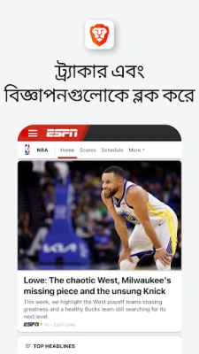 Brave ব্রাউজার এবং সার্চ ইঞ্জিন একটি নিরাপদ ও ব্যক্তিগত ওয়েব অভিজ্ঞতা নিশ্চিত করে। স্বয়ংক্রিয় বিজ্ঞাপন ব্লক ও বিল্ট-ইন VPN-এর সাহায্যে Brave ওয়েব সার্ফিংয়ের সময় ট্র্যাকার ও বিজ্ঞাপন নিজে থেকেই ব্লক করে।