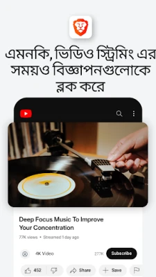 Brave আপনাকে একটি নতুন ইন্টারনেট ইকোসিস্টেমে স্বাগত জানায়, যেখানে আপনার সময় ও মনোযোগের মূল্য দেওয়া হয়। পুরনো ব্রাউজারগুলি আপনাকে বিজ্ঞাপন দেখতে বাধ্য করে, কিন্তু Brave আপনাকে আপনার মনোযোগের জন্য পুরস্কৃত করে। আপনি চাইলে ব্যক্তিগত তথ্যের গোপনীয়তা বজায় রেখে নির্বাচিত বিজ্ঞাপন দেখতে পারেন এবং তার জন্য Brave পুরস্কার অর্জন করতে পারেন। Brave-এর মূল লক্ষ্য হলো একটি ন্যায্য ডিজিটাল পরিবেশ তৈরি করা, যেখানে ব্যবহারকারীদের ডেটা সুরক্ষিত থাকবে এবং কন্টেন্ট নির্মাতারাও তাদের কাজের জন্য যথাযথ পারিশ্রমিক পাবেন। এটি কেবল একটি ব্রাউজার নয়, এটি একটি আন্দোলন যা ইন্টারনেটকে আরও উন্নত ও ন্যায়সঙ্গত করার স্বপ্ন দেখে।
