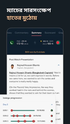 প্রতিটি ম্যাচের লাইভ আপডেট, নির্ভুল স্কোর এবং বিস্তারিত সেশন ইন্ডিকেটর সহ ক্রিকেট এক্সচেঞ্জ আপনাকে রিয়েল-টাইম খেলার উত্তেজনা উপহার দেয়। প্রতি বলে স্কোর পরিবর্তনের সাথে সাথে পান অডিও স্পিচ, যা খেলার প্রতিটি মুহূর্তকে আরও প্রাণবন্ত করে তোলে। ম্যাচের পুঙ্খানুপুঙ্খ স্কোরকার্ড, ভেন্যু ডিটেইলস এবং ইন্টারঅ্যাক্টিভ ফিক্সচার্স ট্যাব আপনাকে আসন্ন ও সমাপ্ত ম্যাচের সম্পূর্ণ চিত্র দেবে। সিরিজ, লীগ ও টুর্নামেন্টের সর্বশেষ পয়েন্ট তালিকা এবং দলের ফরম্যাট বিশ্লেষণও হাতের মুঠোয়।
