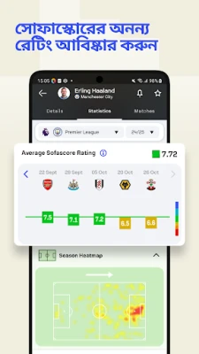 সফাস্কোর শুধু স্কোর প্রদর্শনে সীমাবদ্ধ নয়; এটি গভীর বিশ্লেষণাত্মক ক্ষমতার এক ভান্ডার। পেশাদারদের জন্য ব্যবহৃত ৩০০-এরও বেশি পরিসংখ্যানগত রেটিং, খেলোয়াড়দের বৈশিষ্ট্যর ভিজ্যুয়াল ওভারভিউ, এবং ম্যাচের আক্রমণাত্মক গতি ট্র্যাক করার অনন্য গ্রাফের মতো বিশেষ ফিচারগুলো আবিষ্কার করুন। বাস্কেটবলের বক্স স্কোর ও শটম্যাপ, টেনিসের পাওয়ার গ্রাফ, এবং ফুটবল ম্যাচের হিটম্যাপ দিয়ে প্রতিটি ম্যাচের গতিবিধি পুঙ্খানুপুঙ্খভাবে পর্যবেক্ষণ করুন। দল ও খেলোয়াড়দের হেড-টু-হেড পারফরম্যান্স তুলনা করে তাদের প্রতিদ্বন্দ্বিতা ও ইতিহাস বিশ্লেষণ করুন। ফুটবল, বাস্কেটবল, টেনিস, ক্রিকেট, রাগবি, ই-স্পোর্টস সহ ২৫টিরও বেশি খেলা এবং ৫০০০-এর বেশি লিগ ও টুর্নামেন্টের ব্যাপক কভারেজ প্রদান করে সফাস্কোর। এছাড়াও, Wear OS স্মার্টওয়াচের জন্য অপ্টিমাইজেশনের মাধ্যমে আপনি চলার পথেও খেলার জগতের সাথে সংযুক্ত থাকতে পারবেন।